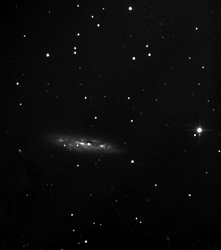 Target: M108, galaxy Date: 2.5.2004 Time: - Location: Vantaa, Finland Conditions: Naked eye limit magnitude ~3..3.5 Telescope: N150 f5 (GSO) Mount: GEM w RA stepper motor (Sky-View) Camera: SC2 webcam (PCVC840K).