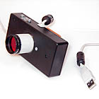 At left; modified Philips Toucam Pro II. It has 'SC2' modifications, allowing long exposures and turning off the CCD-chip's internal amplifier during exposures to reduce glow. It connects to computer by USB and parallel port. The parallel port connections are required for the long exposure and amp-off features and are made by the RJ-45 connector visible in the image. On front of the 1.25" barrel is a Baader UV/IR-cut filter #2459207. The overall structure has provision to install a peltier cooling element to reduce CCD temperature. However there is no peltier currently installed so this camera belongs to 'uncooled' category. The heatsink just provides a low thermal resistance path from to camera internals to outside air, keeping the CCD at approximately ambient temperature during operation.